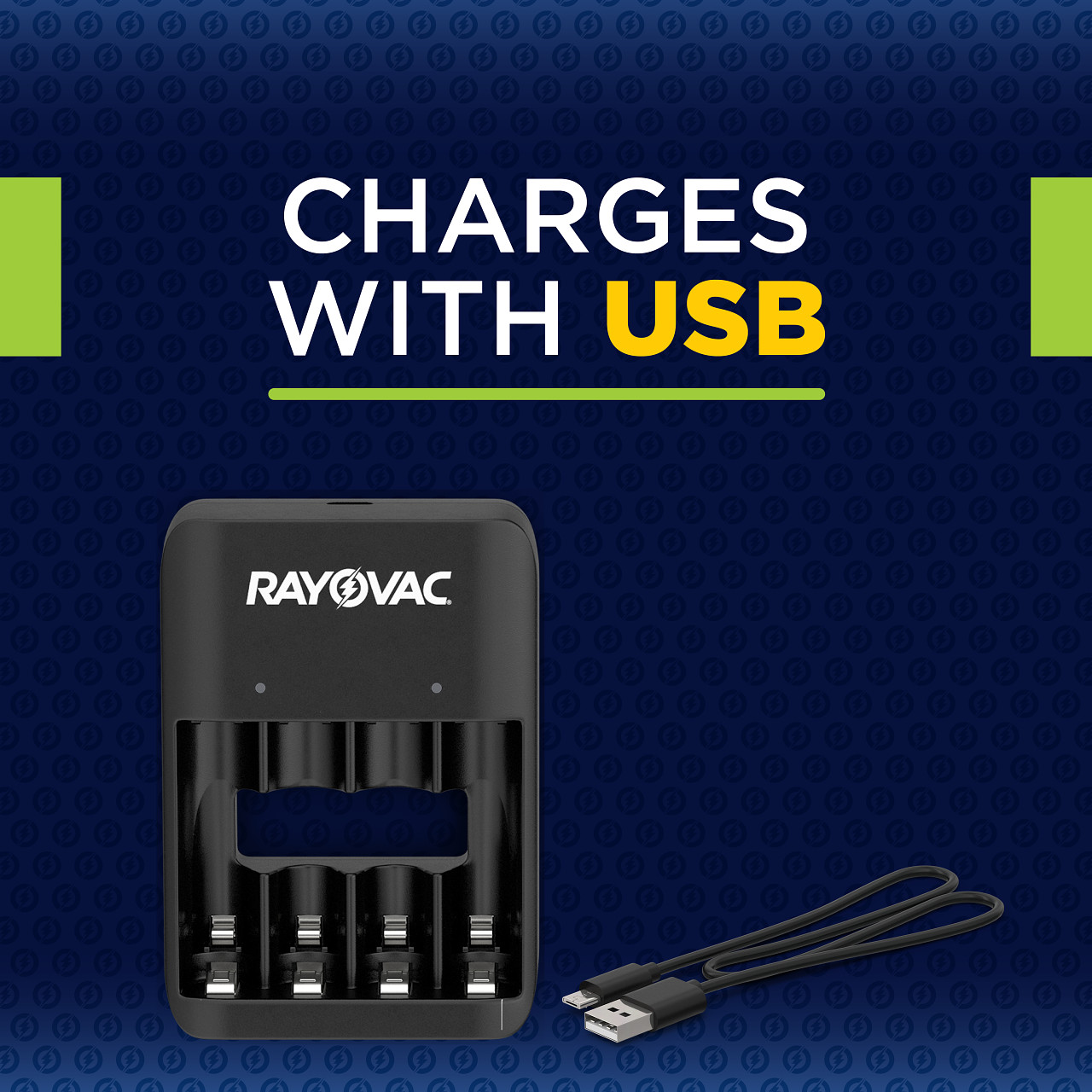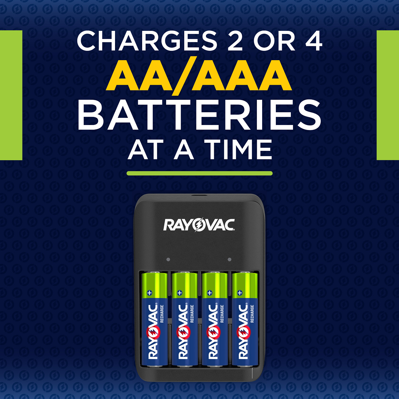 RAYOVAC® Rechargeable Battery Chargers are compact and ideal for keeping your rechargeable batteries ready to go. This charger is compatible with AA and AAA batteries, and can recharge them fully in just eight hours, giving you constant power for all your digital devices.